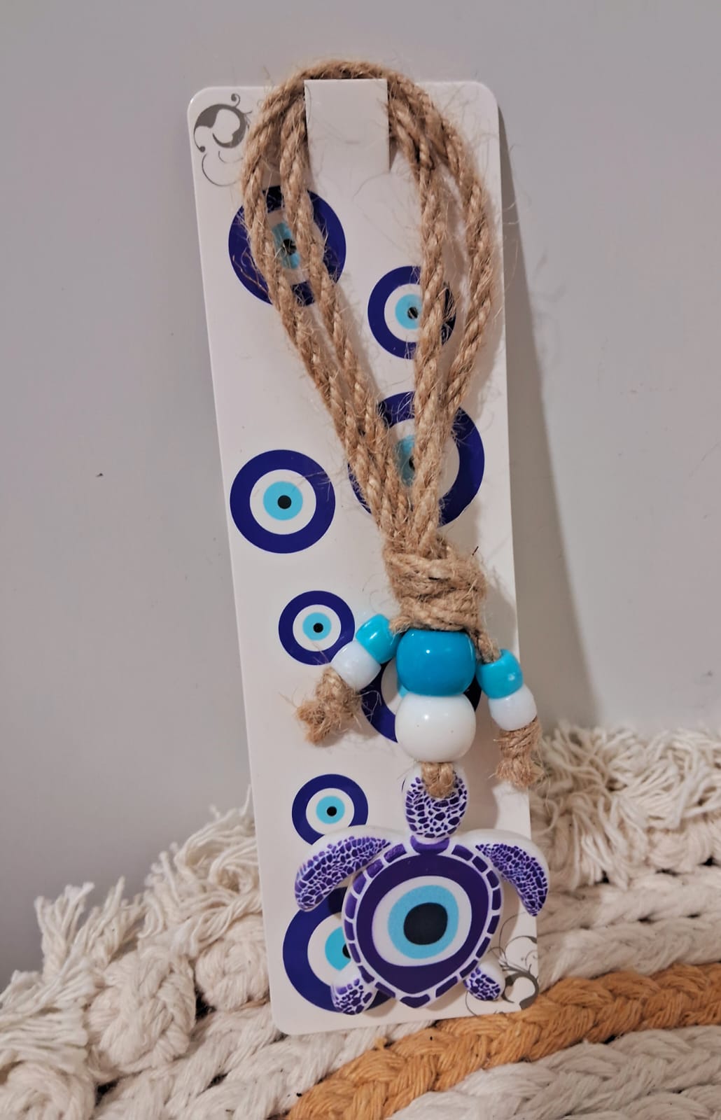 Colgante de tortuga con diseño de ojo turco, un amuleto protector que atrae buena energía y aleja las malas vibras.